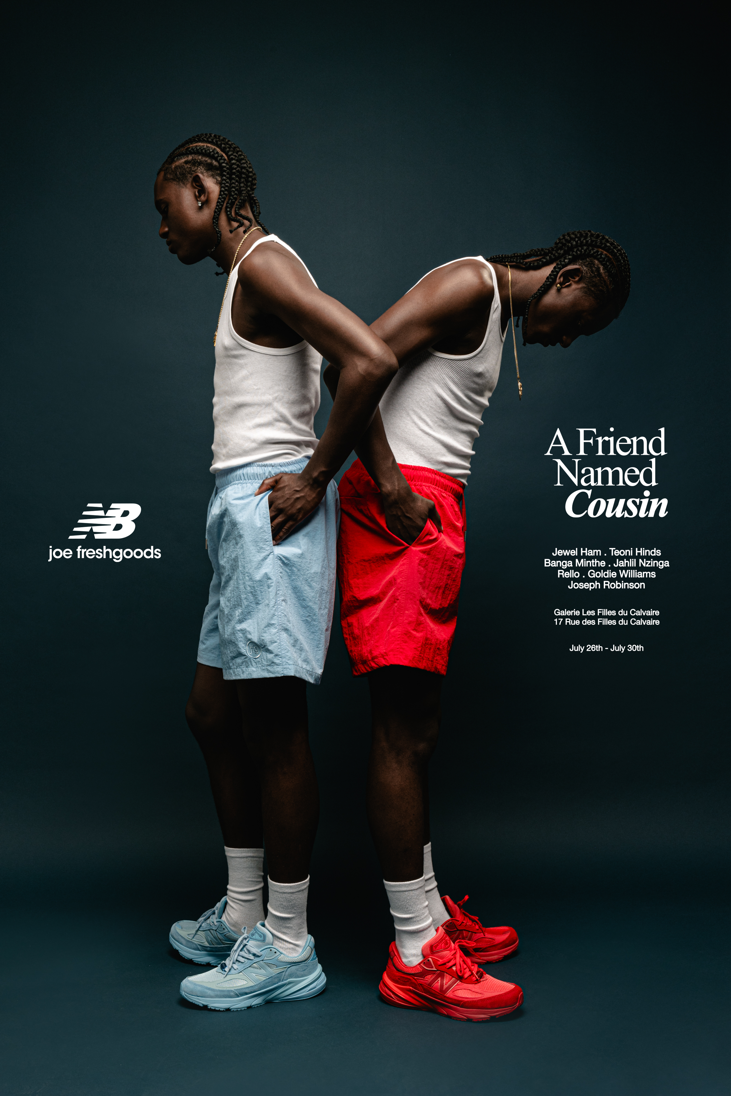 In 2024, Joe Freshgoods curated an art exhibition with New Balance titled "A Friend Named Cousin," exploring the idea of chosen family beyond biological ties. The exhibition highlights how deep friendships can form through love, support, and shared experiences. Featured artworks included Freshgoods' debut piece, "Looking Ova Me," among others by artists Jahlil Nzinga, Jewel Ham, Goldie Williams, Teoni, Banga Minthe, and RELLO.